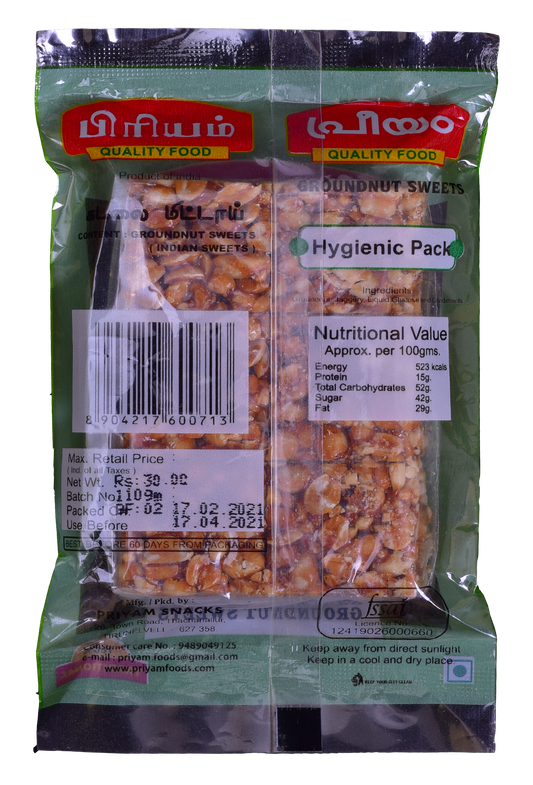 Palm Jaggery Peanut Burfi (Karupatti Kadalaimittai) - 100g